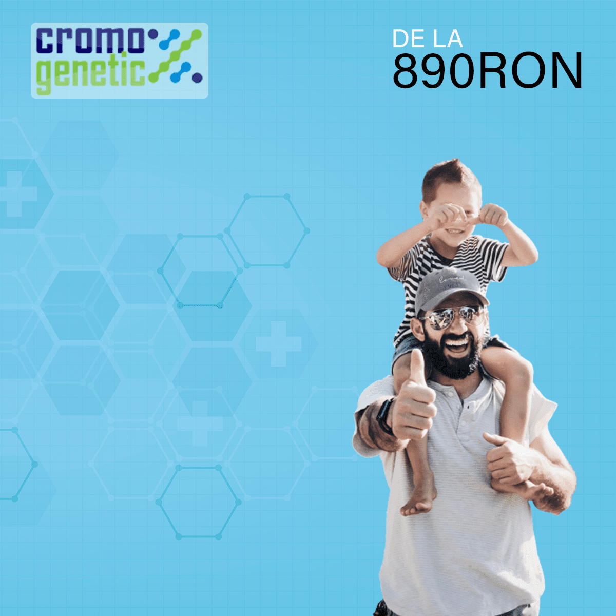 Cromo Genetic vă oferă teste ADN complet acreditate în timp scurt și la costuri mici. Testul nostru de paternitate la domiciliu are o precizie de peste 99,99% și prețul începe de la doar 890RON. FĂRĂ TAXE ASCUNSE.